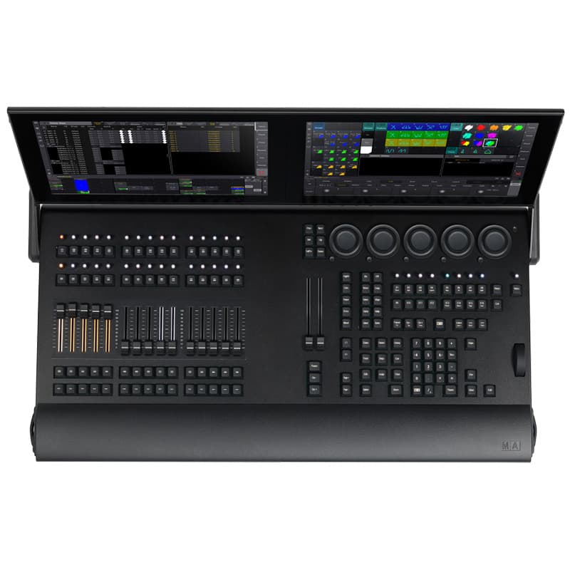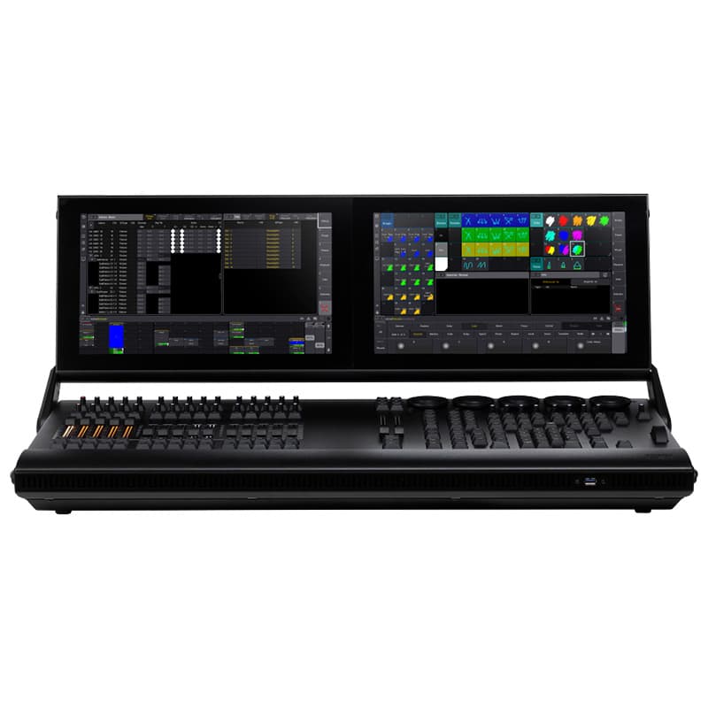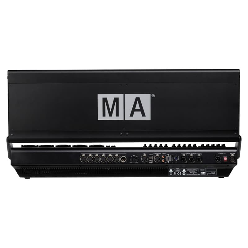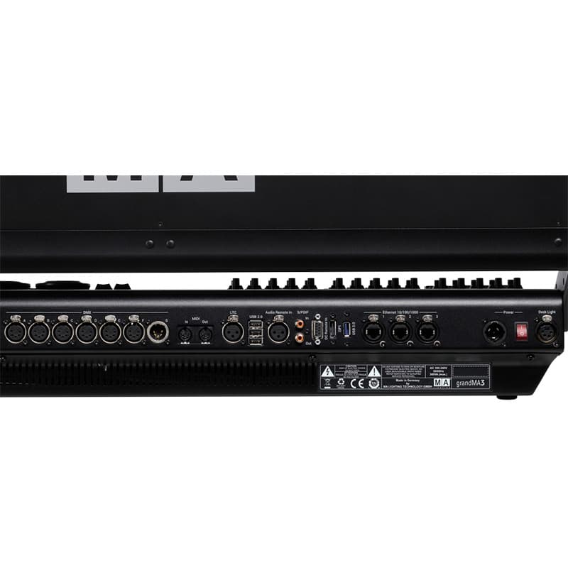 - Connectors: powerCON TRUE1, etherCON/RJ45, DMX512-A Out (5pin XLR female), DMX512-A In (5pin XLR male), MIDI In (5pin DIN female), MIDI Out (5pin DIN female), Linear Timecode (3pin XLR female), Audio In (3pin XLR female), GPI General Purpose Interface (D-SUB DE9 female) for remote control, DisplayPort 1.2 for external screens, S/PDIF In and Out, USB 2.0 (type A), USB 3.0 (type A), LED desk light (4pin XLR female)