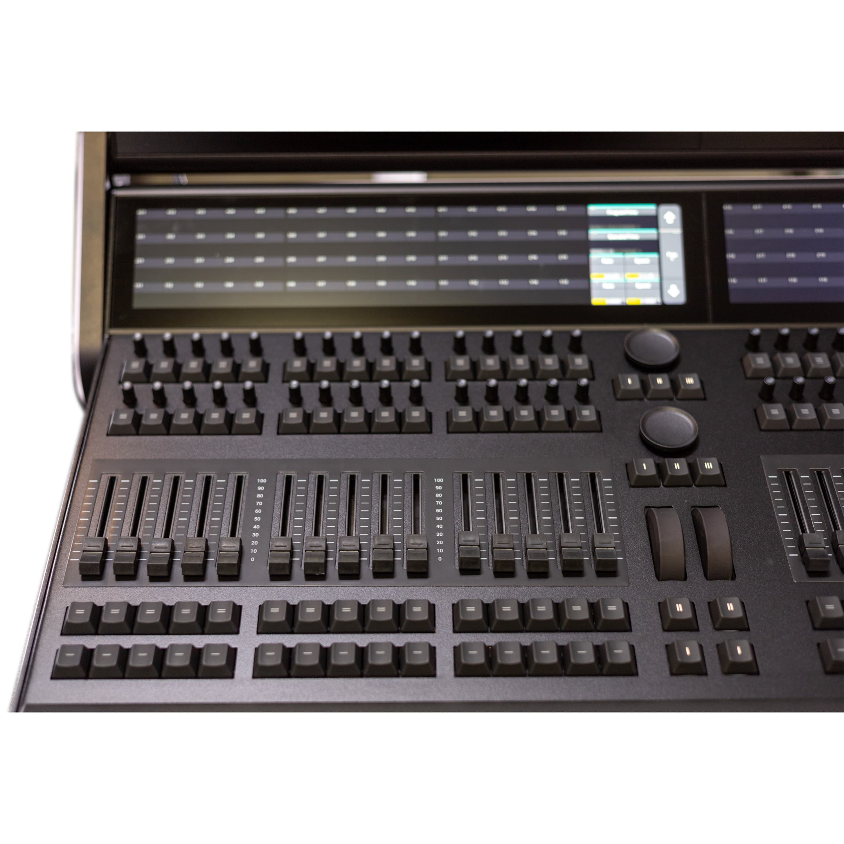 Top-tier lighting control for professionals. Flexible playback platform with multi-touch screen, assignable wheel sections, and dual encoders.